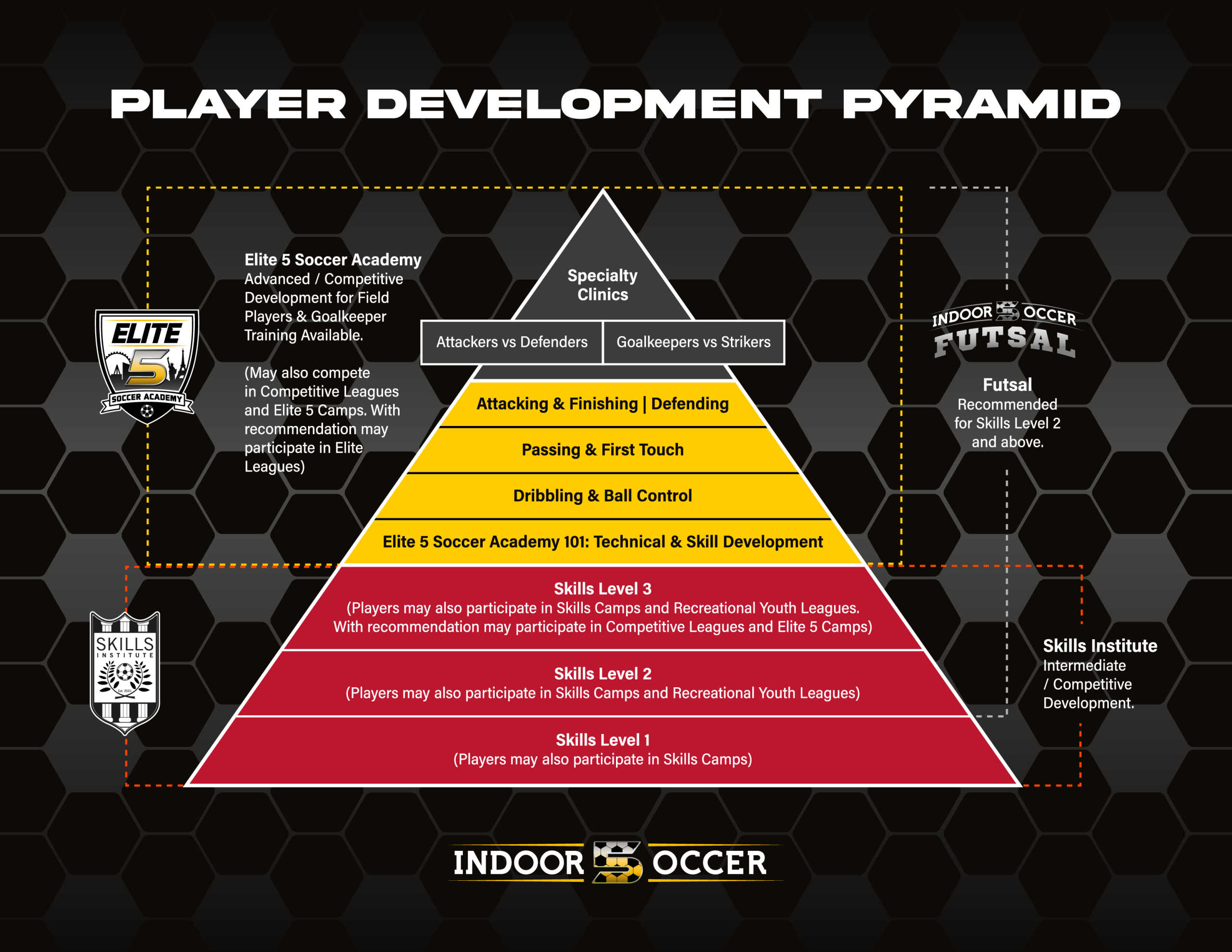 Beginner players are recommended to join our Skills Institute to acquire the basic skills to advance to the intermediate levels, follow the link: Skills Institute | Indoor 5 Soccer.